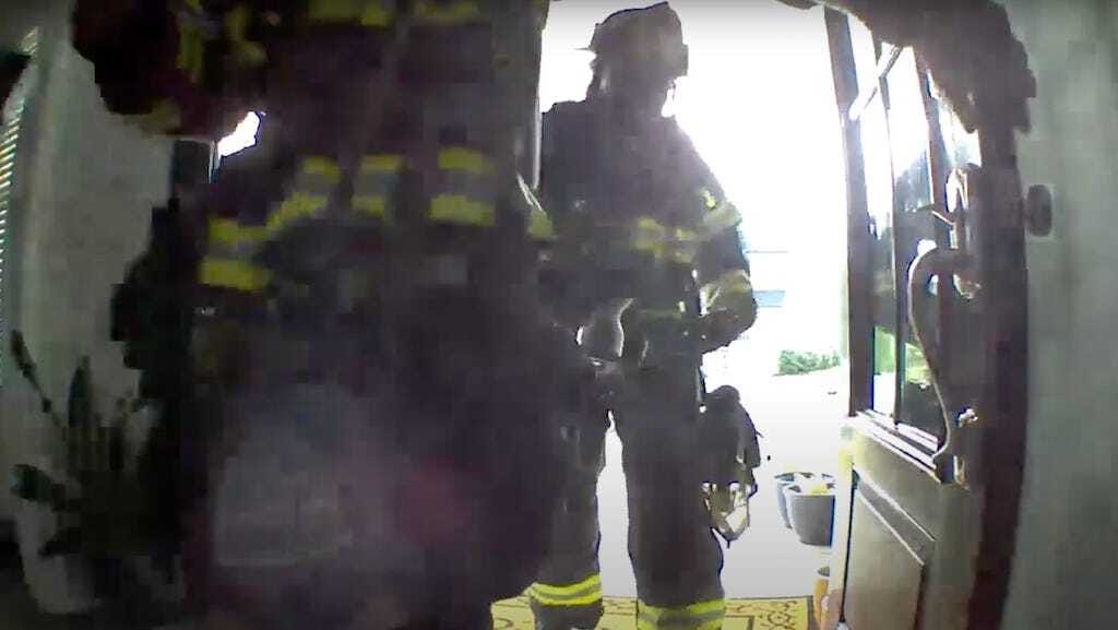 The fuel now cut off, the fire dies. Now to check things out and establish root cause. I’m able to remotely unlock the front door and let the fire people check the inside. (It’s a little surreal seeing all this happen while we’re not home.)
